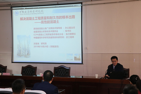 2019年10月29日,中国建筑科学研究院建筑材料研究所总工程师冷发光博士受邀到公司举办“混凝土工程质量和耐久性问题及其解决办法”学术报告会。漯河市建筑学会秘书长刘志杰、建筑学会各会员单位、建设、设计、施工、监理、检测、混凝土公司的技术人员以及yl6809永利的师生170余人参加。学术报告会由yl6809永利经理赵冬梅主持,河南正源建设工程监理有限责任公司副总经理周永丽致欢迎辞。