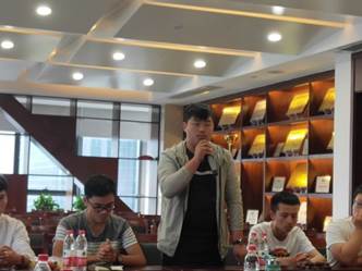 在昊鼎公司实习的9名员工分别谈了实习半个多月的感受及收获;4位企业师傅均为科班出身,毕业于河南工业大学、华北水利水电大学,他们也分别谈了学徒的表现及对其指导内容及方法。