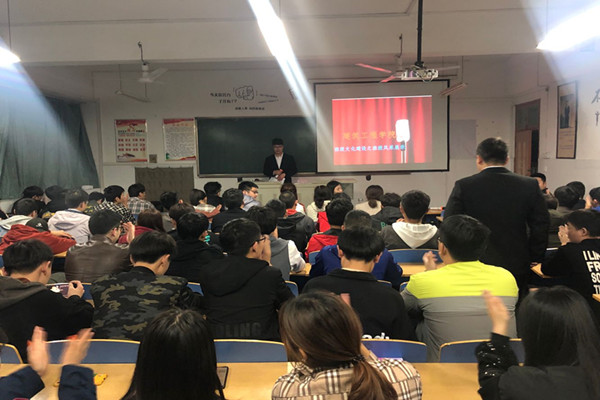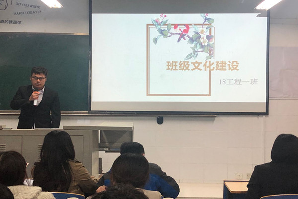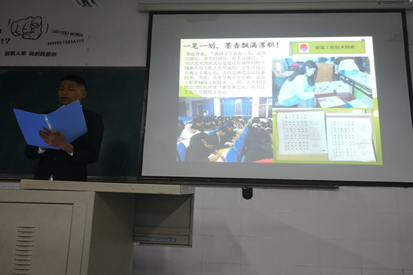 班级文化风采大赛把班级文化建设活动推向了高潮,每个班级把自己的特色班级文化通过PPT、动画等形式汇报展示,围绕班级制度建设、思想建设、学风建设、活动建设等方面进行总结演讲,班级都别出心裁的设定了自己班的班徽、班训、班歌、班级口号及班级展望,PPT作品各有特色,解说员在评委和同学们面前通过激昂且幽默的解说充分展示了自己班级的文化风采及凝聚力。