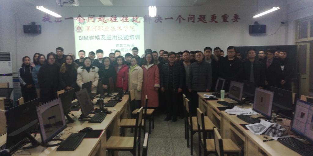 为落实河南省住房和城乡建设厅印发的《河南省住房和城乡建设厅关于推进建筑信息模型(BIM)技术应用工作的指导意见》(豫建设标〔2017〕44号文),帮助企业培养BIM技术人才,适应行业趋势、取得竞争优势,建筑工程系于2019年1月19日-23日在BIM应用技术中心举办了BIM建模及应用培训班。
