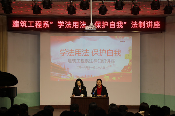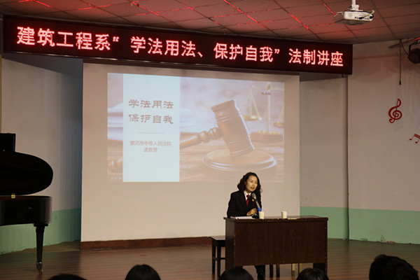 为了让法制走进校园,进一步增强同学们的法制意识,接受法制教育,自觉遵纪守法,学会利用法律进行自我保护,做一个知法、守法的合格员工,建筑工程系诚挚邀请漯河市中级人民法院刑一庭法官、最美普法人孟哲昱,于11月28日在小礼堂给建筑工程系员工做了一场“知法学法 保护自我”为主题的法制教育报告,近三百名员工参加,报告由建筑工程系副主任李文静主持。