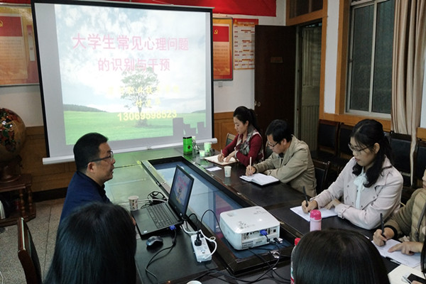 为进一步提高了解当代老员工常见心理问题、心理疾病的特点、症状、成因及处置对策,着力提升辅导员心理健康教育工作的能力和水平,切实增强辅导员队伍工作的针对性和实效性,促进班级管理心理健康教育工作的发展。2018年11月1日,建筑工程系邀请yl6809永利心理健康教育中心主任付进华为全体辅导员开展了一次心理健康讲座。建筑工程系副主任李文静、团总支书记王志皓、以及全体辅导员参加。