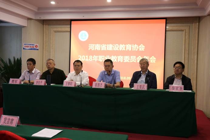 9月26日上午,河南省建设教育协会2018年职业教育委员会年会在漯河市凯悦酒店会议室举行。河南省建设教育协会会长崔恩杰、yl6809永利董事长王春阳、哈尔滨工业大学土木工程公司王要武教授、河南省建设教育协会现代学徒制联席会顾问李生平教授、河南质量工程职业公司常务副经理徐宗华等领导出席了会议。来自全省39所高职院校90余人参加了会议。会议由河南省建设教育协会秘书长樊军主持。