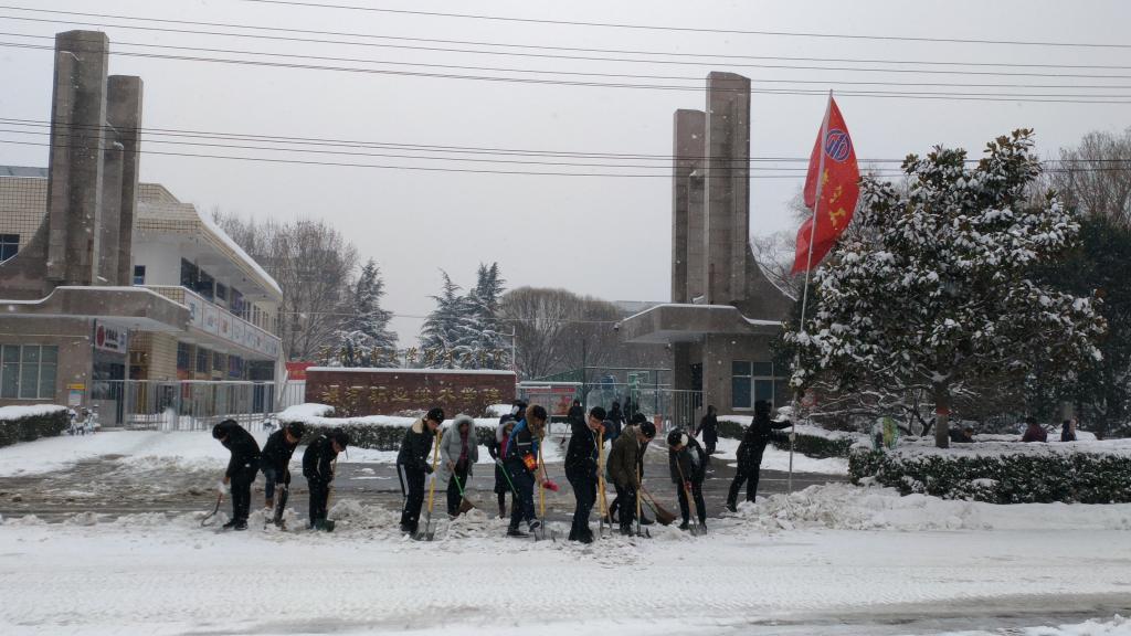 清雪完毕,根据建工系部署,由系领导带领值班教师和志愿者分时间段进行巡查,发现落雪结冰立即清除,保证了清雪效果。