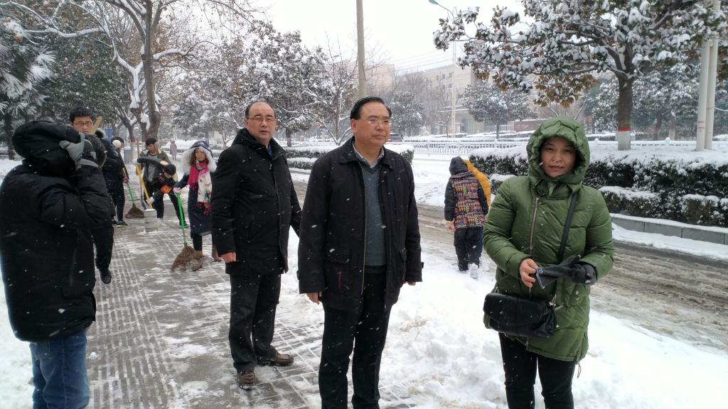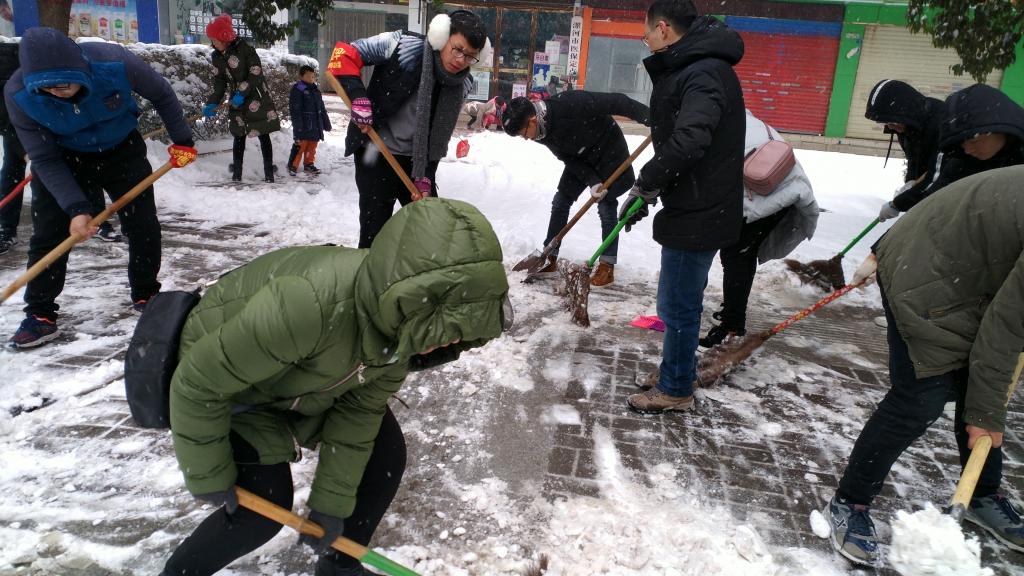 一场十年不遇的暴雪袭击漯河,给市民的出行带来不便,而且极易引起交通事故。建筑工程系连夜布置任务,选派精兵强将组织志愿者队伍,准备工具,冒雪对长江路从公司北门到太行山路口路段进行了集中清理。公司书记顾文明现场指导,建工系主任赵冬梅、办公室主任林果等领导身先士卒,全体志愿队发扬不怕苦不怕累的奉献精神,圆满完成清雪任务。