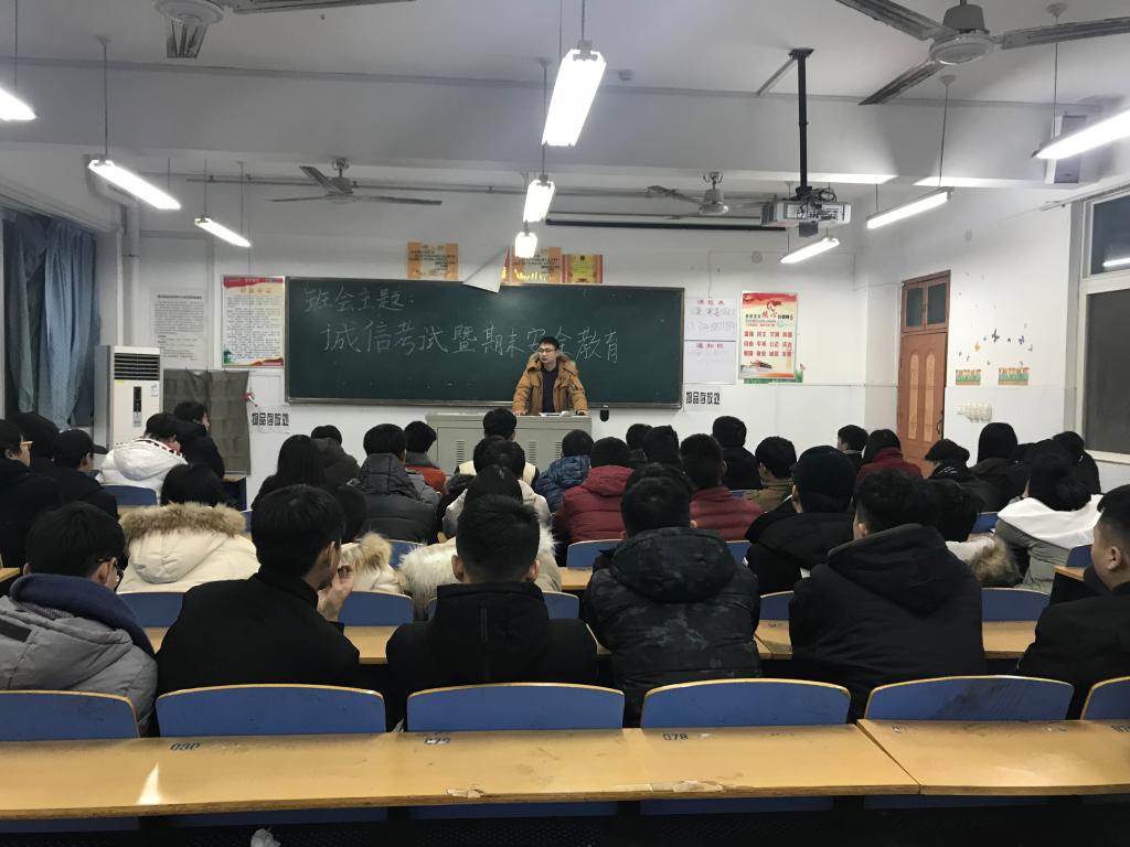期末临近,为做好期末考试的考风考纪教育,部署安排寒假安全教育工作,建筑工程系高度重视,开展了全面细致的安全教育工作,辅导员深入宿舍排查安全隐患,召开安全教育大会,组织员工签订《老员工诚信考试承诺书》,在各年级各班级组织开展了学期末考风考纪暨安全教育活动。
