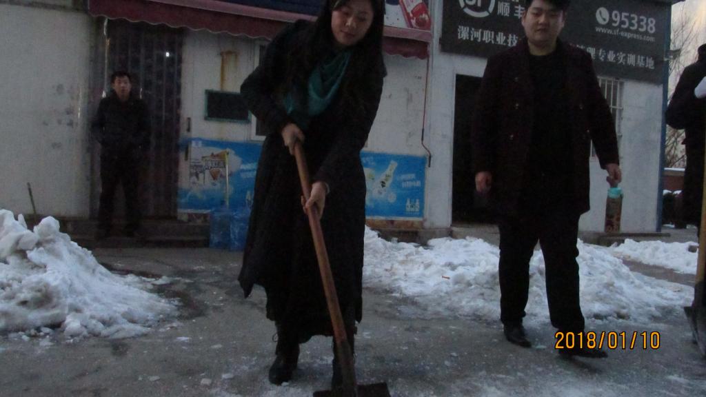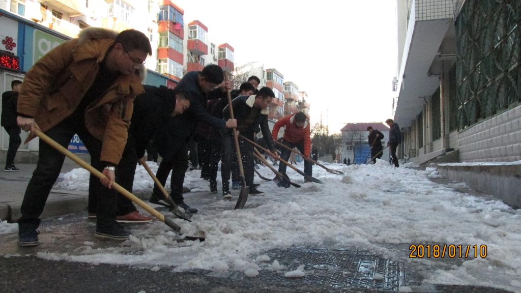 1月10日下午,建筑工程系清扫校园积雪活动在1号实训楼北开展,建工系系学管主任李文静、系团委书记王志皓、系教师宋志广带领系团委、系员工会、系宿管委员工干部参加。