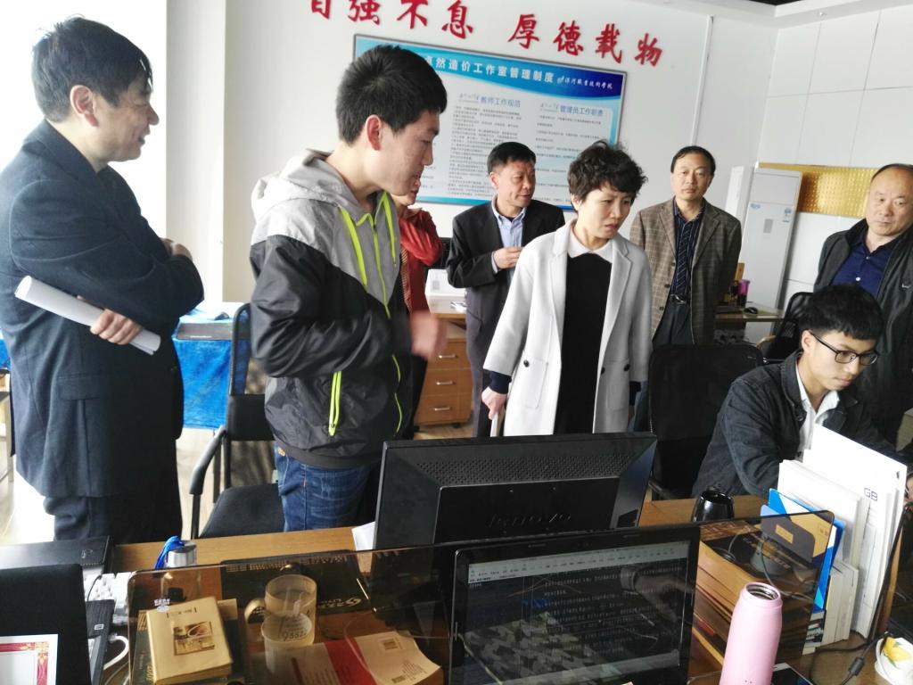 2017年4月26日上午,在副经理王变奇、教务处处长贾新政、实训中心主任张勃的陪同下,漯河市人社局职业能力建设科张文馨科长及教育局、财政局相关领导来公司对“周成科工程造价工作室”进行了验收。