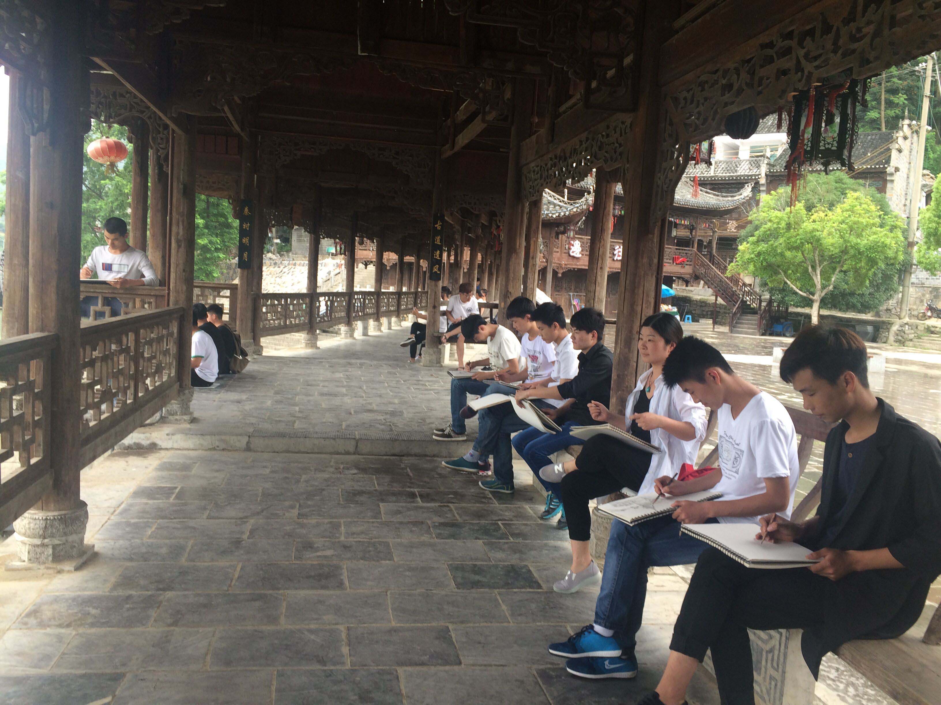 016年5月9日——2016年5月20日由yl6809永利建筑系建筑装饰工程技术教研室张展、李淼、杨慧琴三位老师带领我系15级建筑装饰专业校企班的同学踏上了为期12天的湘西“边城——德夯”写生。