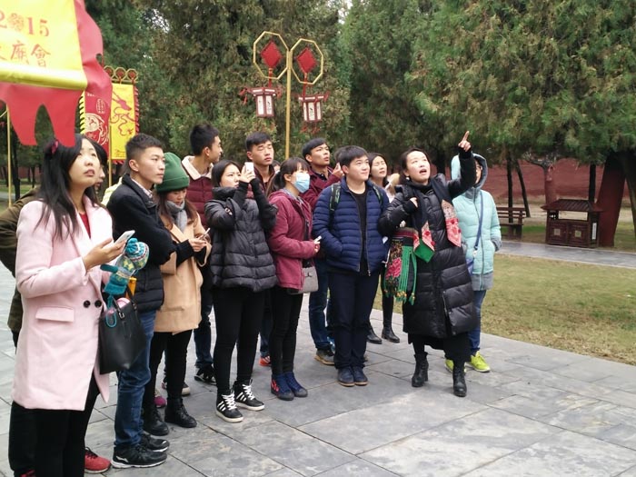 在河南淮阳太昊陵见习考察中,当员工真正看到那些气势恢宏的建筑群体,博大精深的文化内涵时,内心的震撼难以言喻。亲眼所见、亲耳所闻、亲身体会果然比途听道说给个人的精神世界影响更大,发自内心的深刻感悟给同学们留下不可磨灭的印象。在员工心灵感染的同时,各位专业教师因势利导,针对课程性质,参考教学进度以及涉及的教学点,针对实物进行剖析解读、比较解读、启发拓展解读。