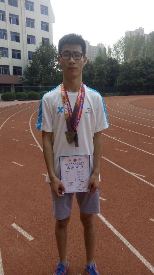该同学在校期间学习成绩优异,爱好长跑,是一名阳光积极向上的员工,每天早上六点钟准时起床在操场上进行跑步锻炼,在老师、同学眼中他是一名自信独立的阳光男孩。虽然与职业运动员无缘,但他从未放弃自己的理想,并为理想每天努力着,用永不放弃的精神来证明对长跑的执着。正是因为这份执着,他先后在2015年天津中国长跑锦标赛中获得季军、2015北京世锦赛十里长跑第十二名、 2015郑开国际马拉松比赛获得优异成绩。