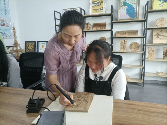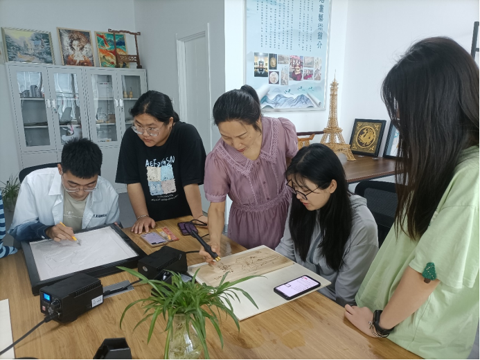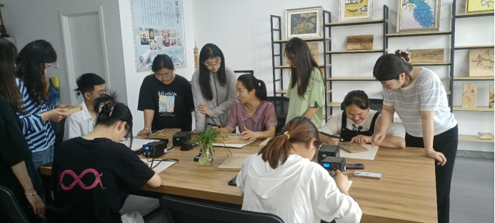 线下体验区设在鲁明大厦智慧岛烙画工作室和创意空间工作室。烙画工作室安排专人进行体验指导,极大的吸引了广大师生的兴趣;与企业合作的设计新风向创意空间,为在校的员工呈现出真实的实习就业环境。师生共同参与作品制作,丰富了同学们的课余生活,激发了员工学习的主动性和参与意识,有利于专业课教学改革的不断深化。
