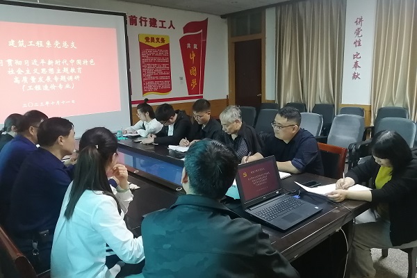 10月11日下午,建筑工程系党总支开展了学习贯彻习近平新时代中国特色社会主义思想主题教育高质量发展专题调研,建筑工程系领导班子成员和工程造价教研室全体老师参加了调研会。