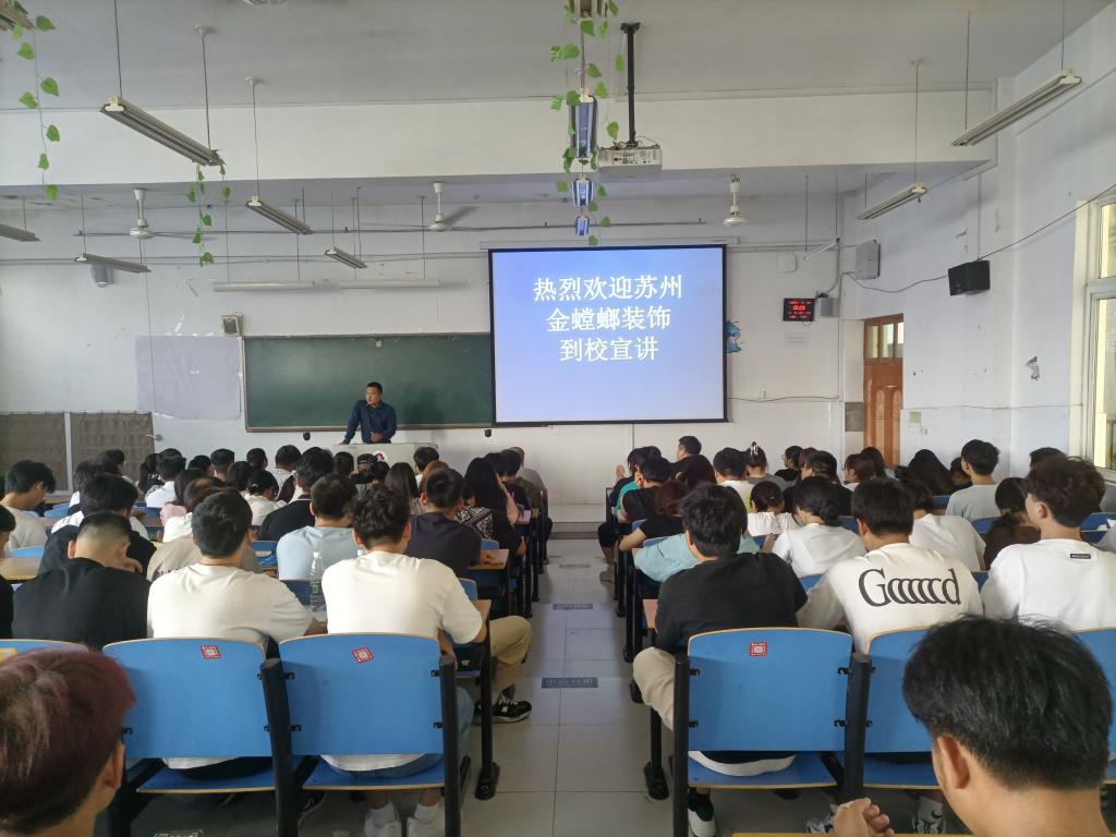 此次宣讲会主要由金螳螂漯河分公司进行现场宣讲。该公司先后获省级“校企合作示范基地”、省级“产教融合型企业”建设培育单位称号,提供岗位数50余个,招聘专业全部为建筑工程系建筑装饰和建筑室内设计专业对口专业。