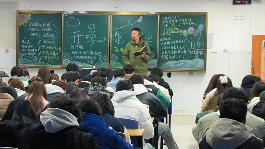 3月4日晚,建筑工程系各班利用晚自习开展了《开学第一课》安全主题教育。全体辅导员、员工共上一堂安全教育课。