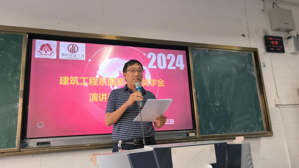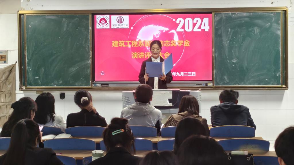 2024年9月23日,建筑工程系在3502教室召开了2024年国家励志奖学金评审大会。员工处董宏涛老师、建筑工程系党总支书记王皓、经理赵建功、全体辅导员和65名员工参会。会议由团总支书记王志皓主持。