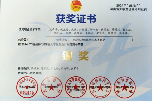 近日,2024年“挑战杯”河南省老员工创业计划竞赛圆满落幕,建筑工程系在此次竞赛中表现优异,荣获五项铜奖,为公司赢得了荣誉,也为建筑工程系的学子们树立了榜样。