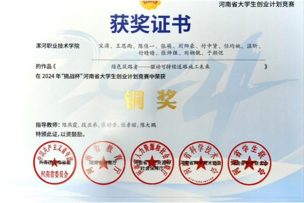 建筑工程系在公司领导的重视和支持下,师生积极组队参赛,经过校、院两级选拔、培育、提升,最终有五个项目脱颖而出,荣获铜奖。这些项目分别是:《精垫筑板—现浇板节能保障技术革新者》《扣启未来—新型十字管卡》《取出芯时代》《漆艺飞扬—韵伞逐梦》《绿色筑路者—驱动可持续导流施工未来》。