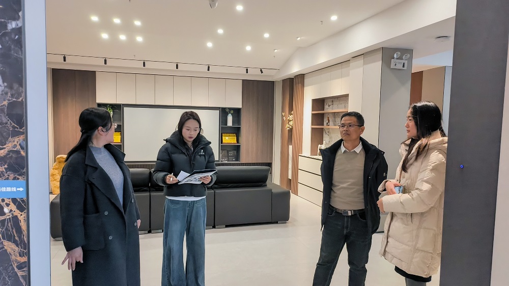 公司领导深入员工实习岗位,实地考察工作环境,并与员工面对面交流,详细了解他们在施工管理、设计实践、客户沟通等环节的专业技能提升情况。在交换空间装饰公司,师生共同探讨了装饰工程中的技术难点与创新应用;在业之家装饰公司,重点关注了新技术在实际项目中的操作流程及员工的适应能力。同学们纷纷表示,实习有效促进了理论知识的转化,职业素养与团队协作能力得到全面提升。