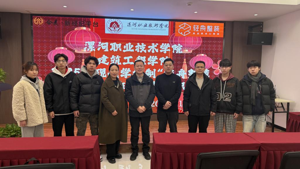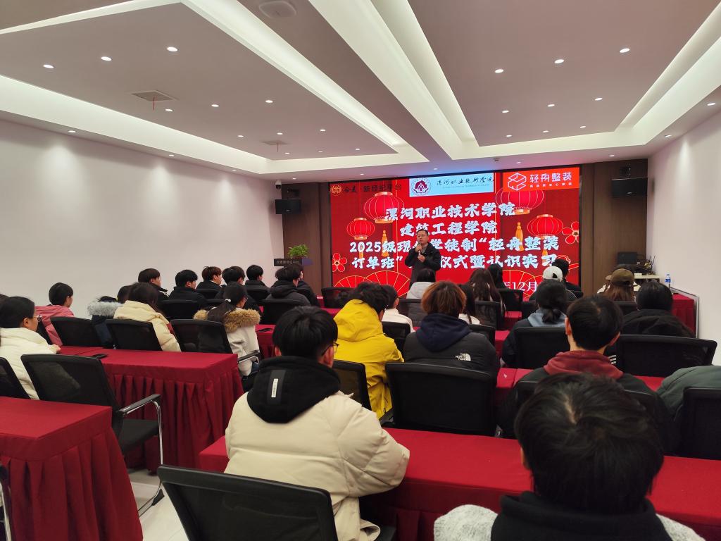12月27日,各班分别对接漯河市合麦装饰工程有限公司等本地企业,其中2025级建筑室内设计1班同步举行了现代学徒制“轻舟整装订单班”开班仪式。