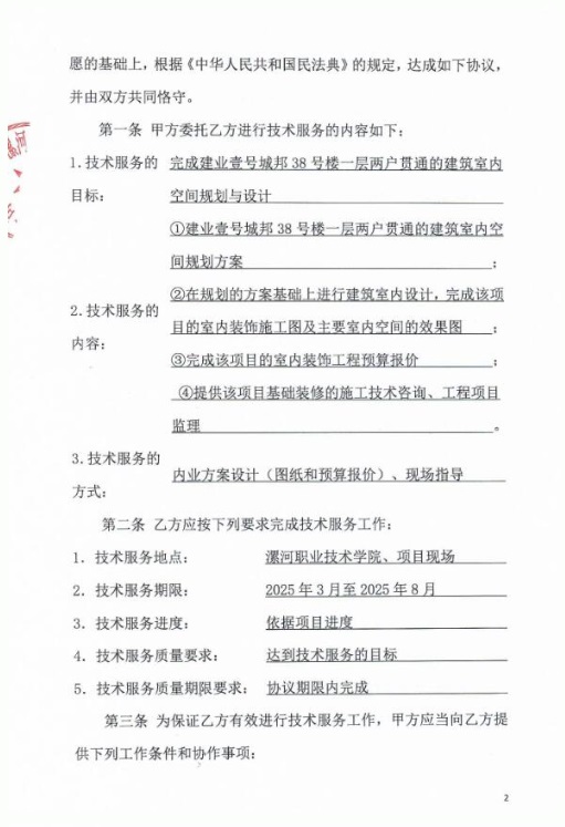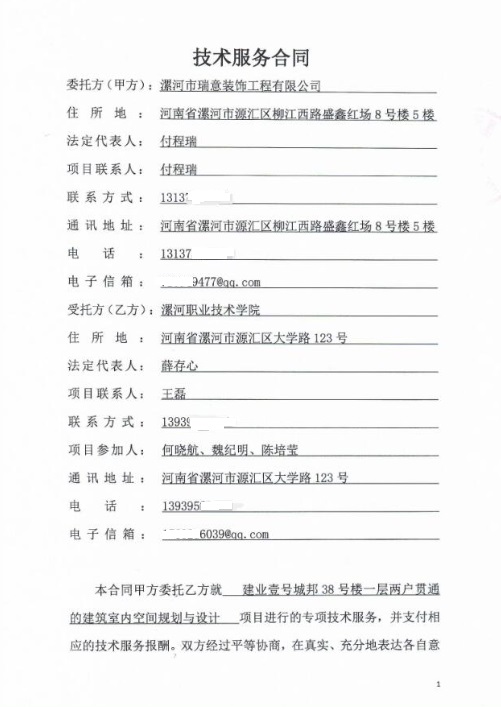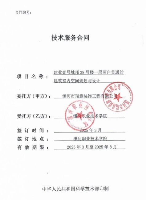 新型建筑工业化科技创新平台团队成员王磊、何晓航完成建业壹号城邦38号楼一层两户贯通的建筑室内空间规划与设计技术服务项目,合同金额43000元整。
