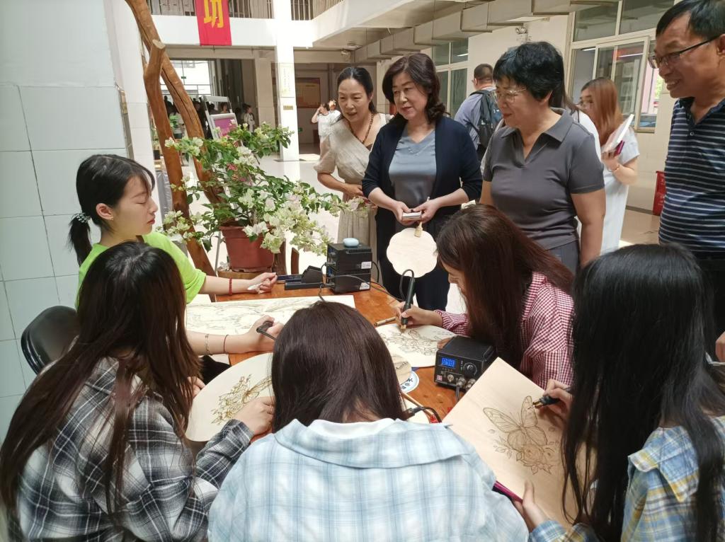 次展览得到了公司领导的高度重视,副董事长吕爱华、程传蕊、石晓以及教务处及科研处负责同志先后到现场参观指导。校领导详细了解员工作品创作过程,并与师生进行了亲切交谈。
