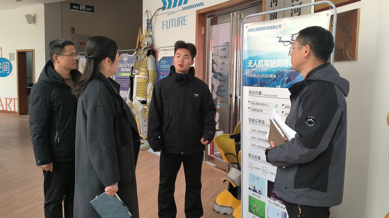 公司领导与老师深入员工实习岗位和工作环境,详细了解他们的工作内容、生活状况和实习收获。在合麦装饰工程有限公司,院领导关切询问了员工在施工工艺、材料认知、客户沟通等方面的实践进展;在河南云翼无人机培训公司,重点了解了员工在测绘无人机外业数据采集、内业数据处理等新技术应用方面的学习情况。同学们普遍反映,通过实习将理论知识应用于实践,专业技能和职业素养得到了显著提升。