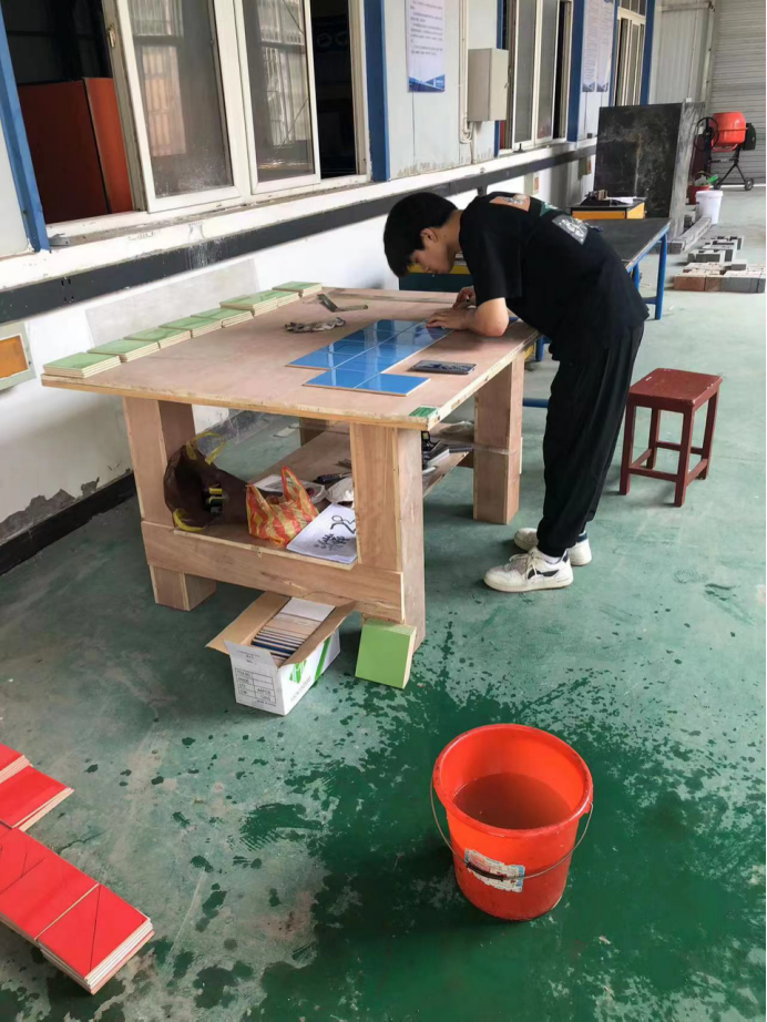 在竞赛赛场上,同学们发扬不怕苦、不怕累的拼搏精神,以饱满的热情、执着的态度,展现工匠精神,经过师生同心协力,师带徒瓷砖贴面技艺有效传承,呈现出一定的专业课实训成效。